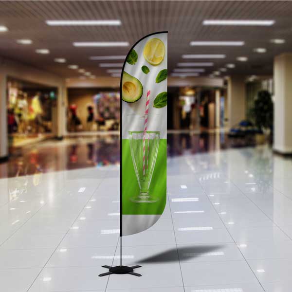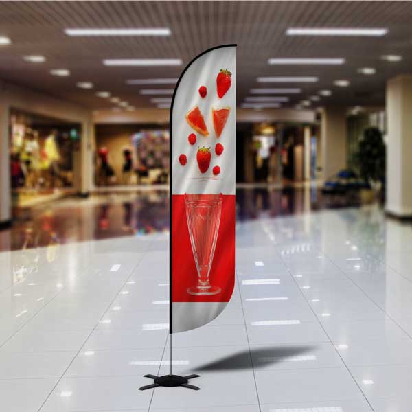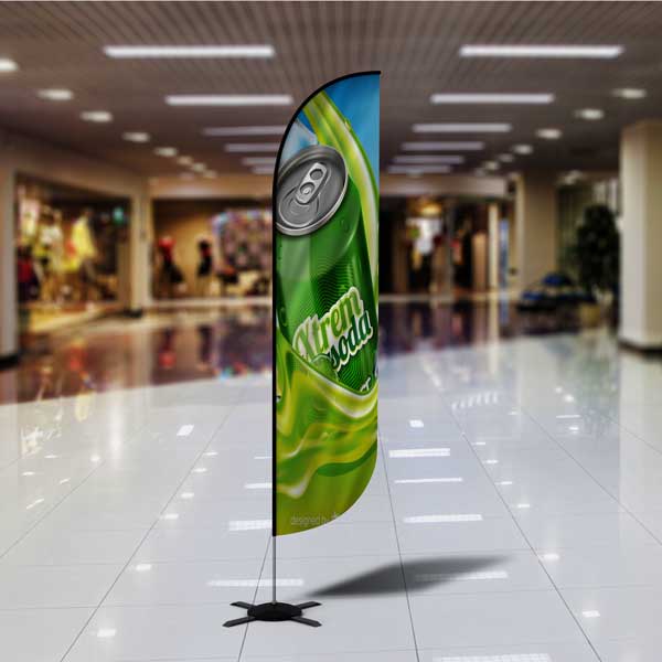 With our feather flags you can make your advertising message attractive! The possibilities are almost endless. Weather at the beach, in the snow, in the countryside or at trade shows - Feather flags are individual and popular. Effectively advertise your logo or message with our feather angled flag, suitable for indoor and outdoor events. Available hardware options including a heavy duty cross base or ground stake to fit to your pole set.